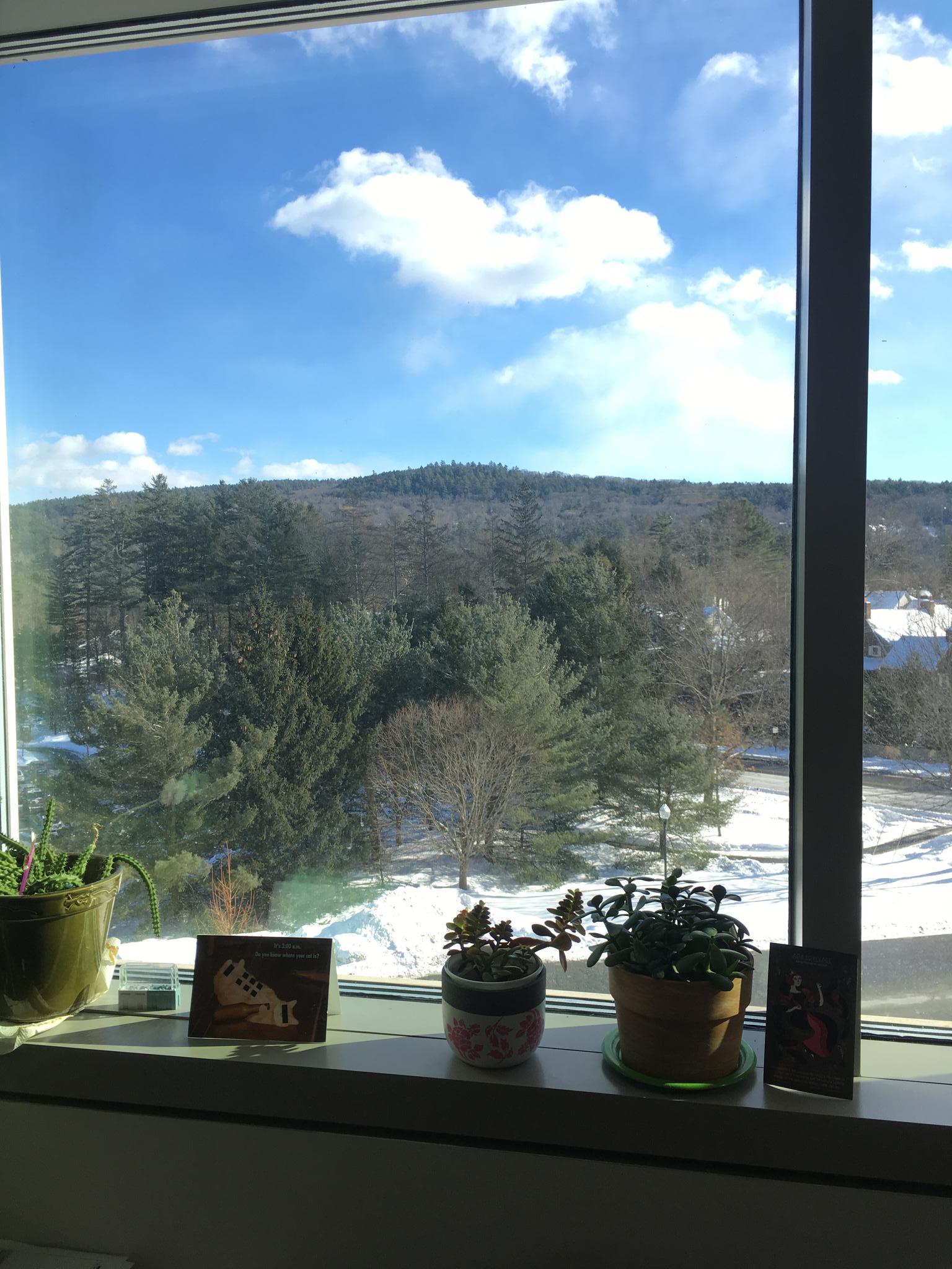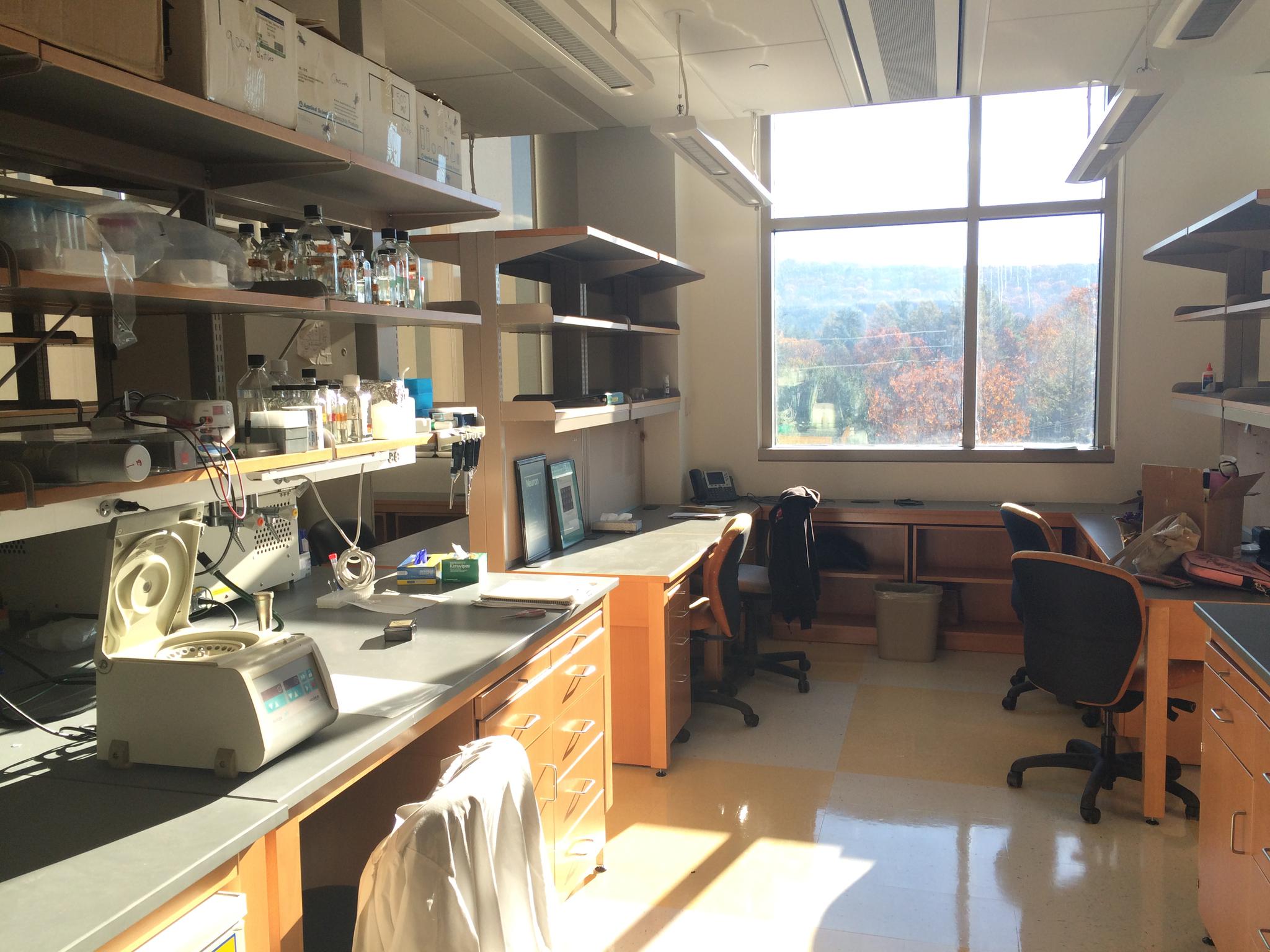 For the first three years I was here we studied the effects of NF-kappa B's on retinal degeneration, and then we changed gears and are currently working on a gene that may be involved with Alzheimer's. More on this to come! First, here is the reason I fell in love with this laboratory the very first day I walked in. A lab with a view of the Green Mountains. Where else would I want to be every day?
